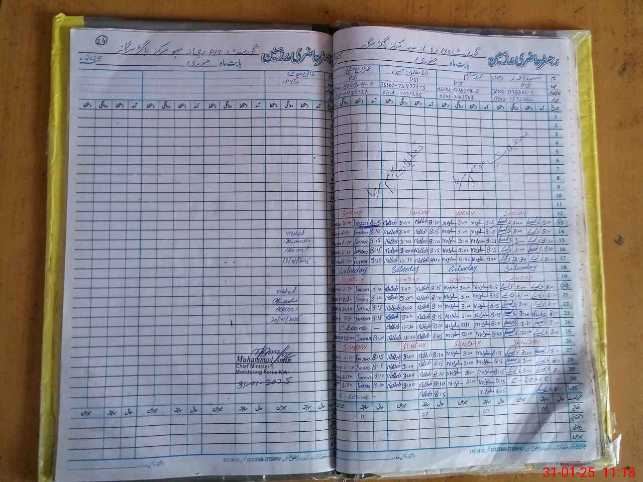 | CNIC | Full Name | Designation | R/C | Absence During Last Calender Month |