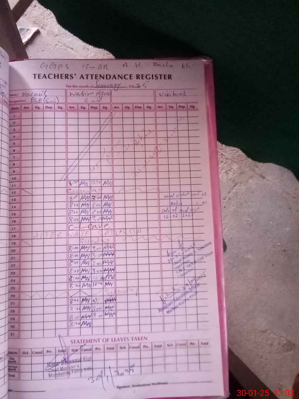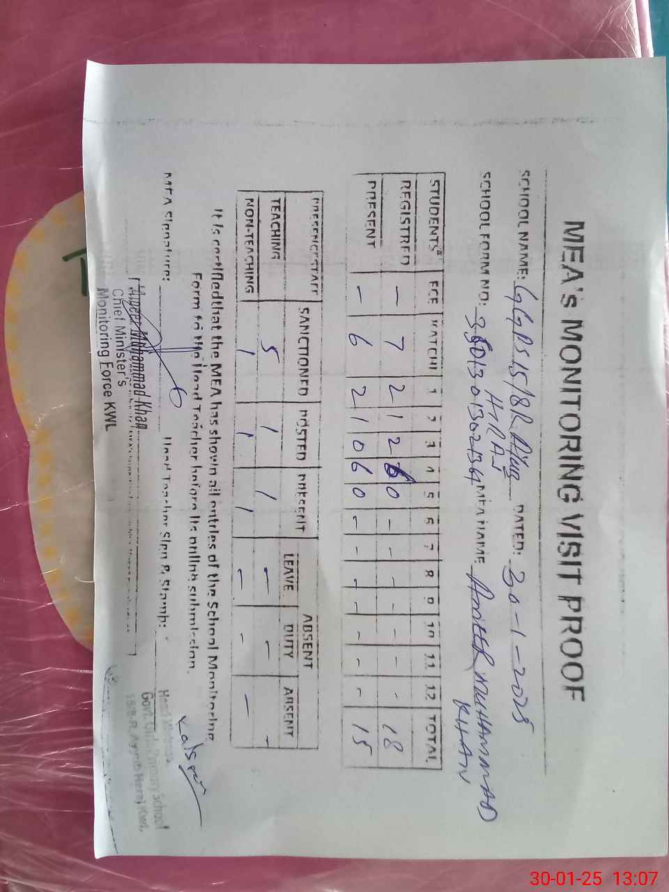 | Attendance Register | Head Teacher | MEA with School | Visit Proof |