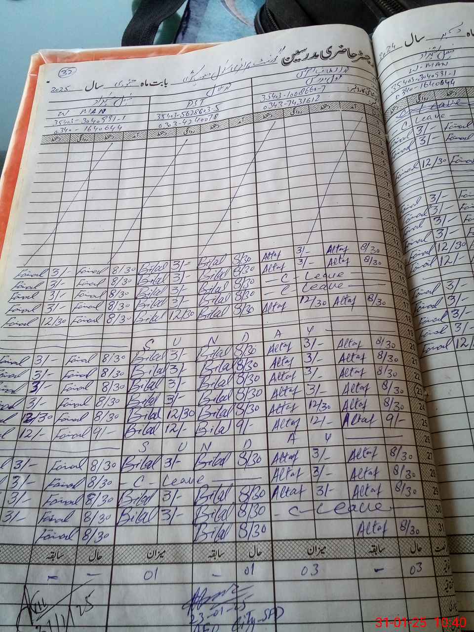 | CNIC | Full Name | Designation | R/C | Absence During Last Calender Month |