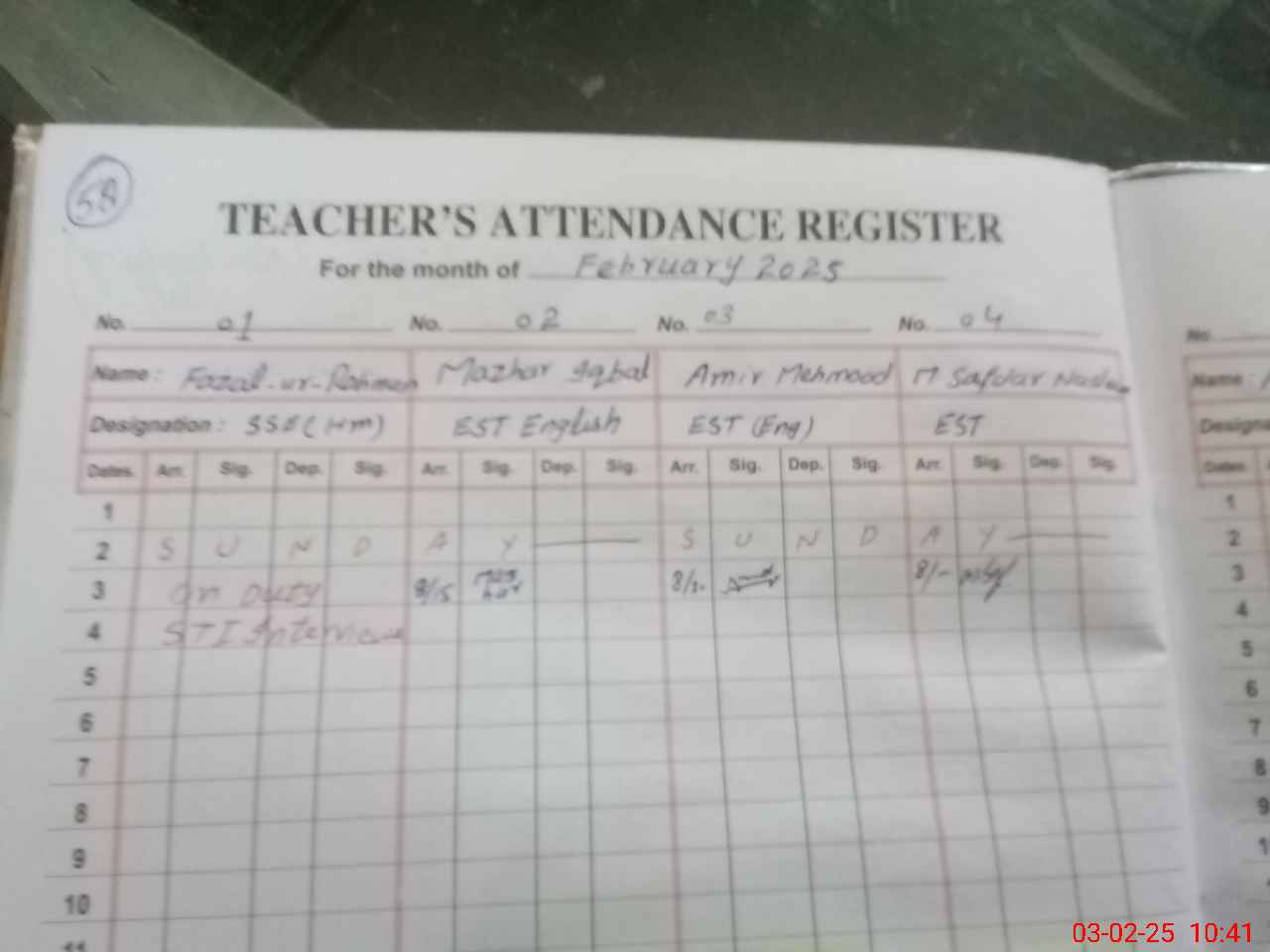 | Name: FA**** URRA**** Designation: (School Headmaster's/Headmistress's) SSE ENG Phone/Cell Number: 03**** |