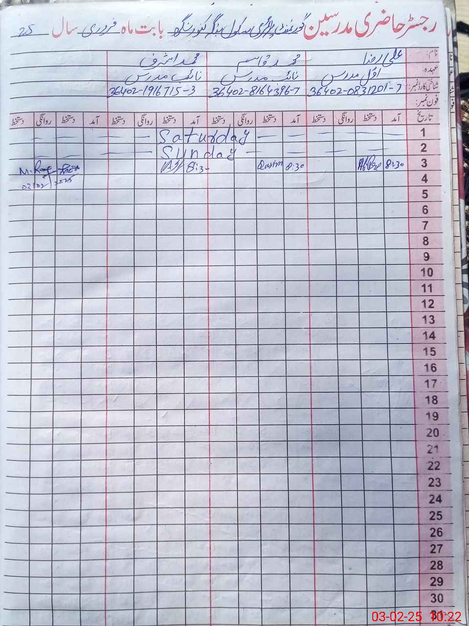 | Name: AL**** RA**** Designation: (School Headmaster's/Headmistress's) PST Phone/Cell Number: 03**** |