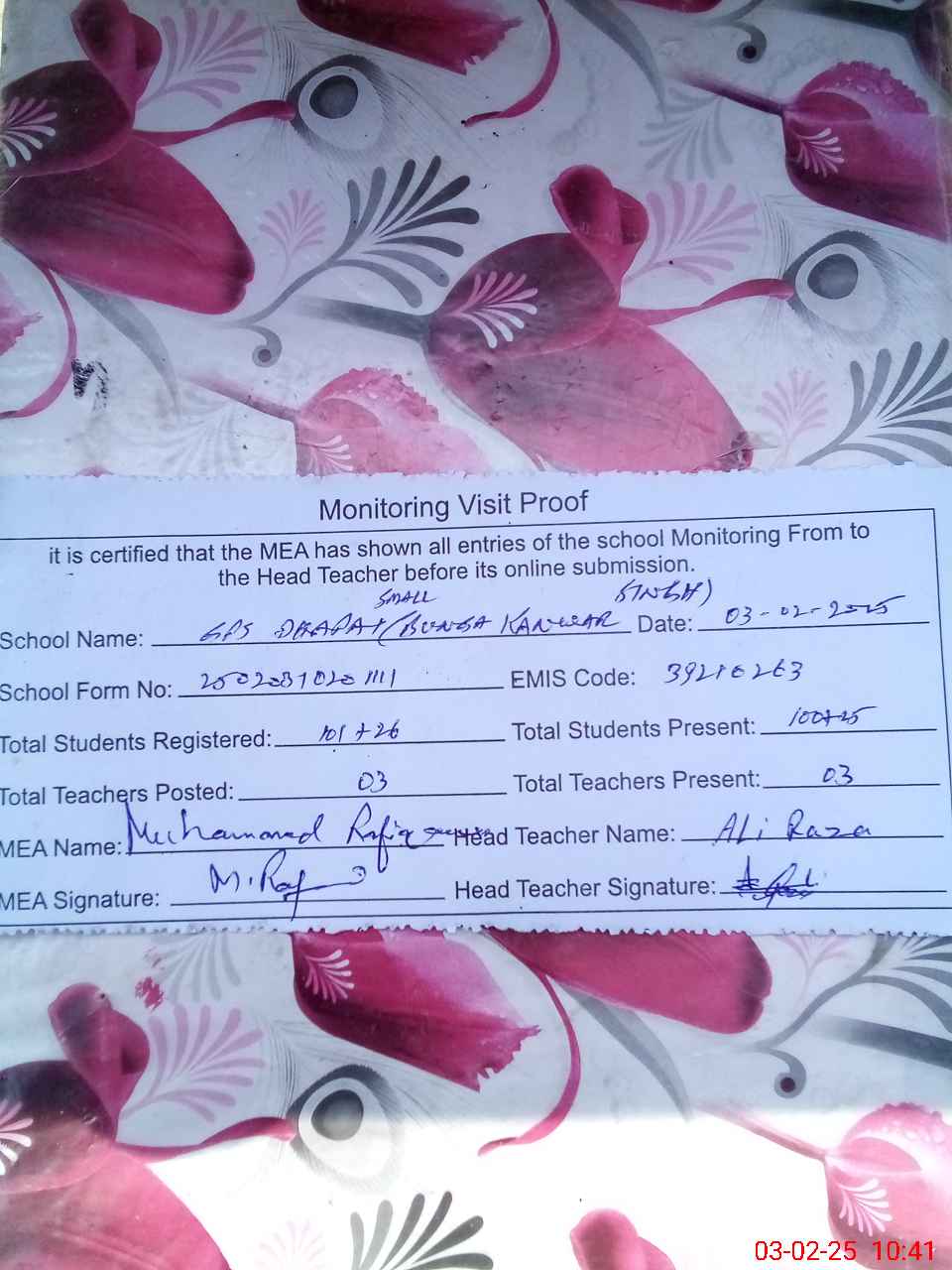 | EMIS Code: 39210263 | Name of School: GPS BUNGA KANWAR SINGH | |||