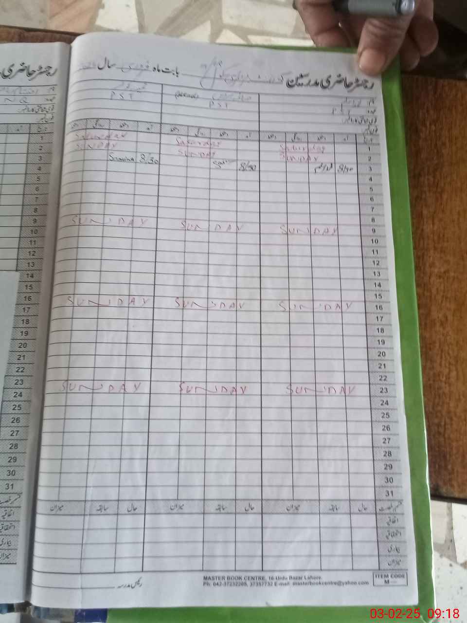 | CNIC | Full Name | Designation | R/C | Absence During Last Calender Month |