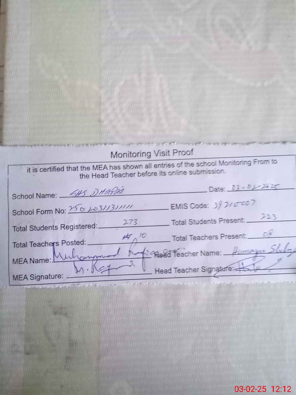 | EMIS Code: 39210007 | Name of School: GHS DHAPPAI | |||
