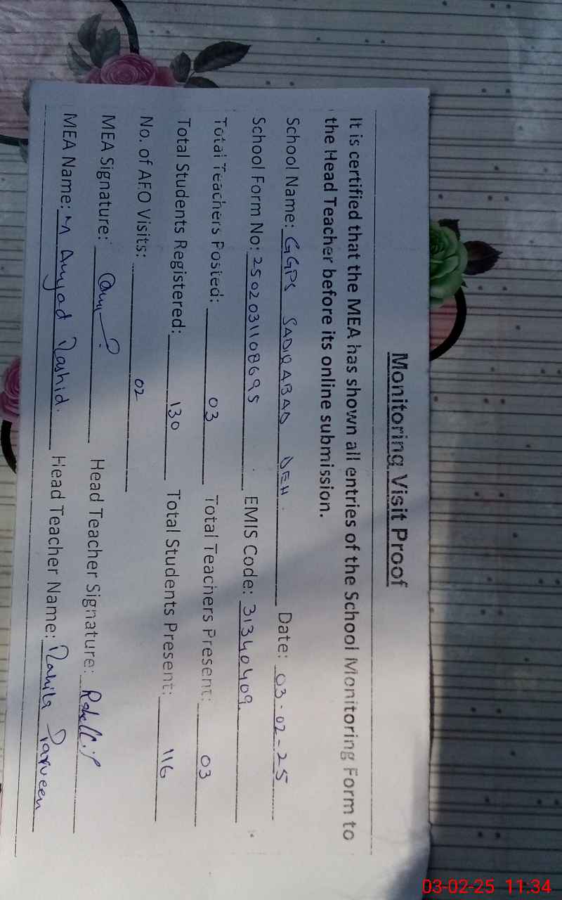 | EMIS Code: 31340409 | Name of School: GGPS SADIQ ABAD DEH | |||
