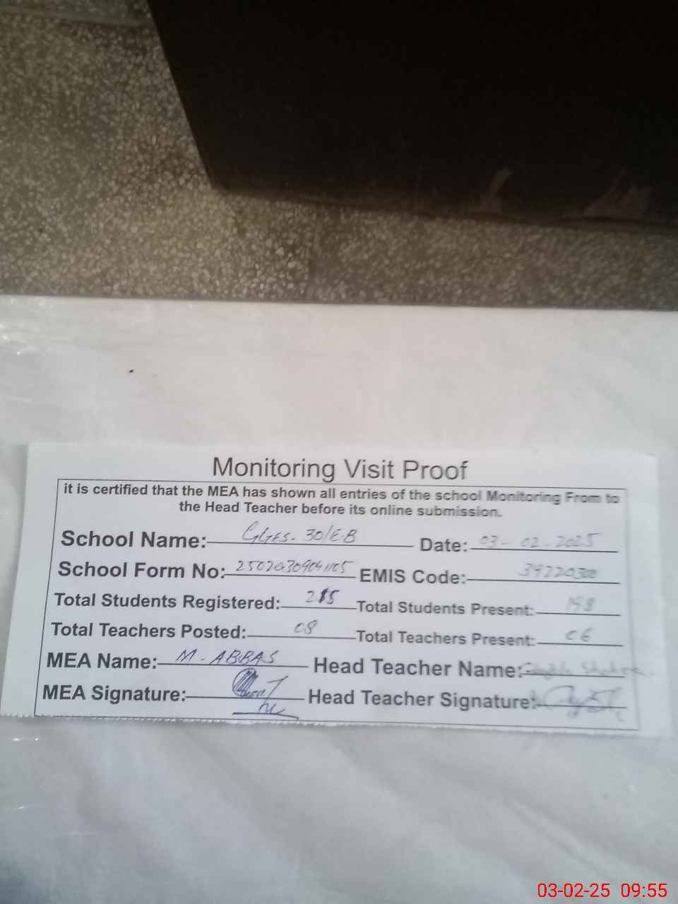 | Certified that this School was Inspected by the Undersigned MEA/DMO Today and the Information Stated Above is as Per Record. | |||||