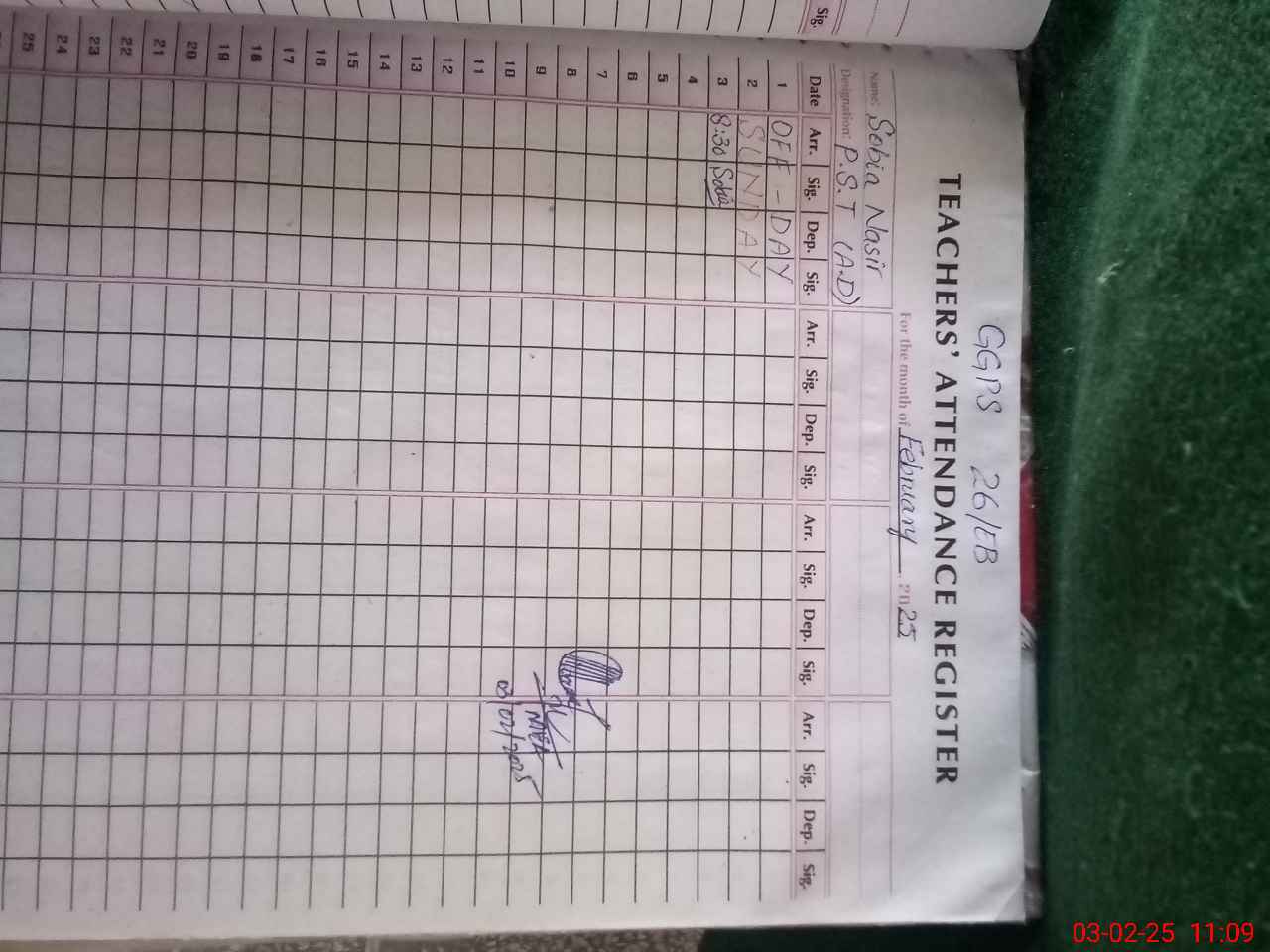 | Name: SA**** AM**** Designation: (School Headmaster's/Headmistress's) PST Phone/Cell Number: 03**** |