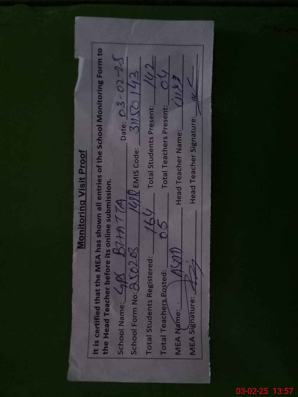 | EMIS Code: 31150143 | Name of School: GPS BHATTA | |||