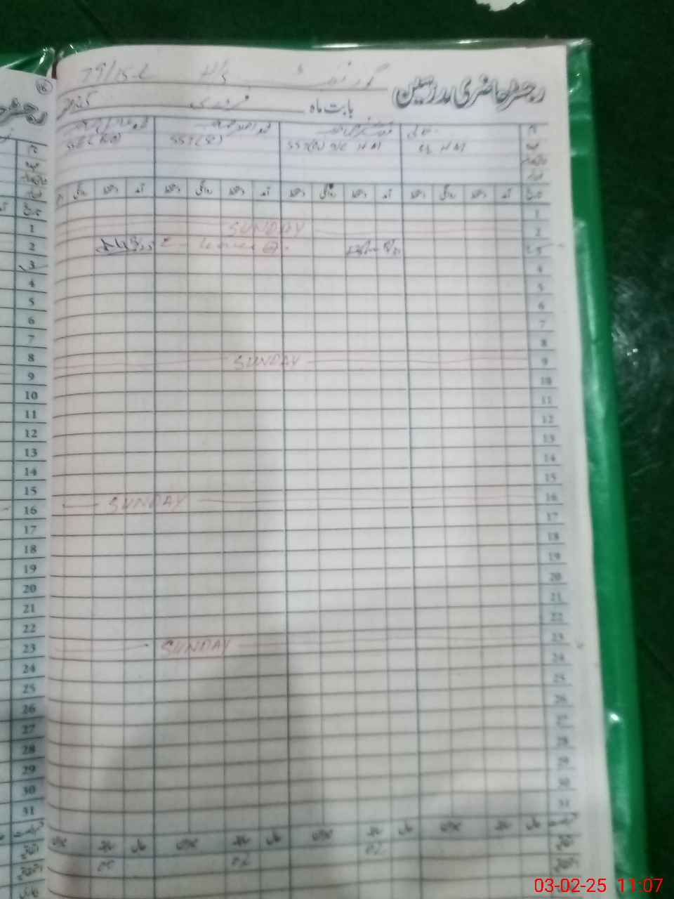 | CNIC | Full Name | Designation | R/C | Absence During Last Calender Month |