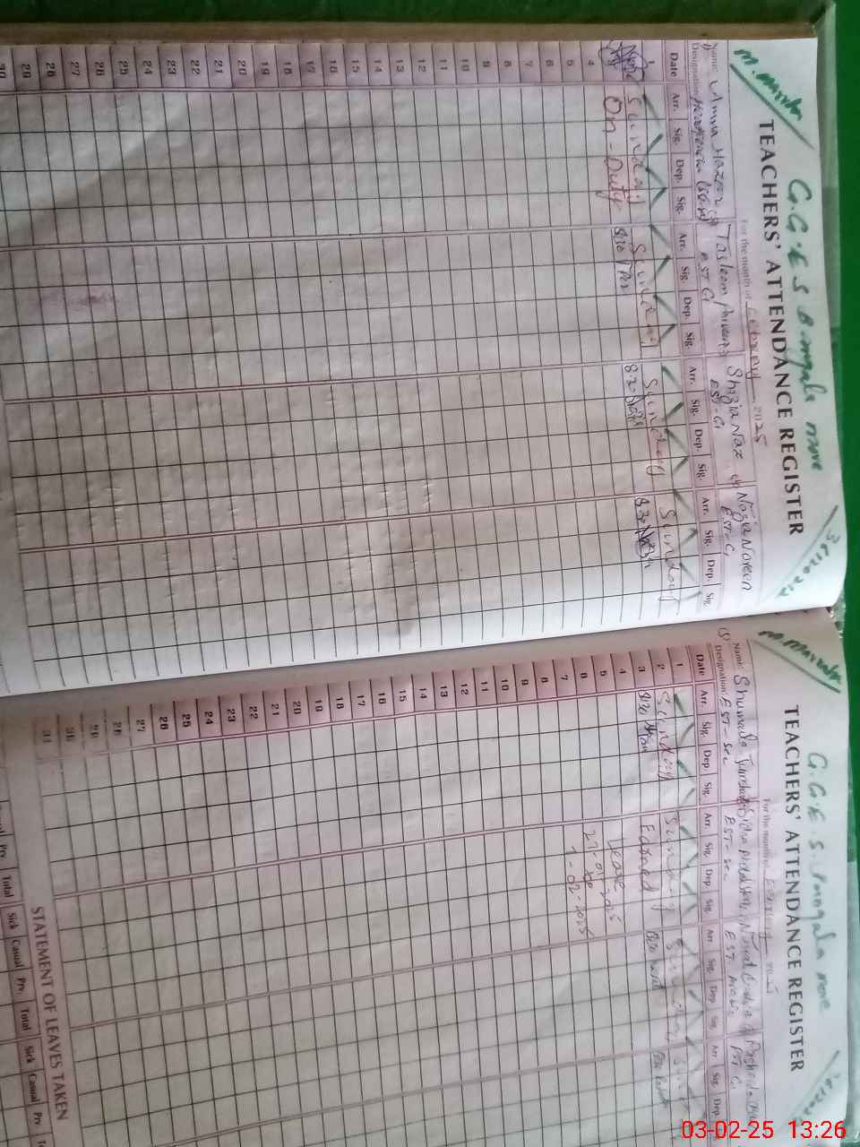 | Leave | Duty | Absent | Maternity | Medical | Ex- Pak |
