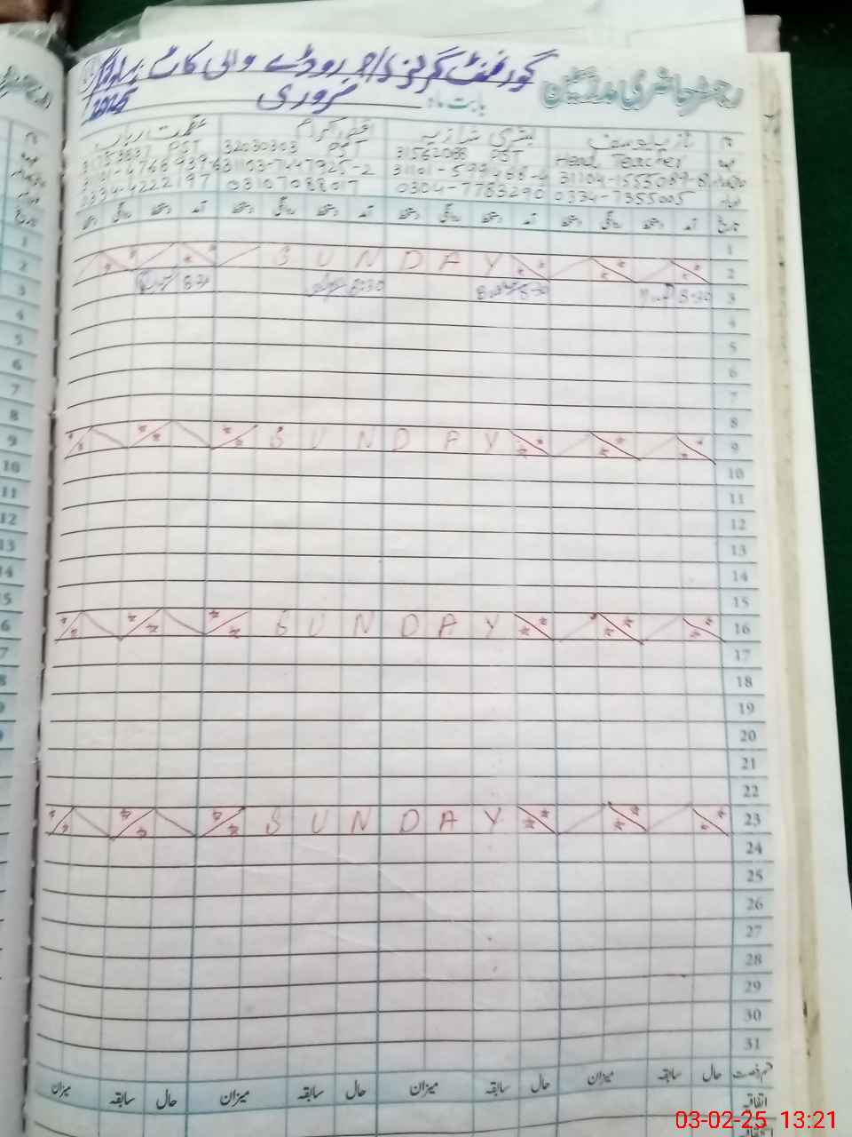 | CNIC | Full Name | Designation | R/C | Absence During Last Calender Month |