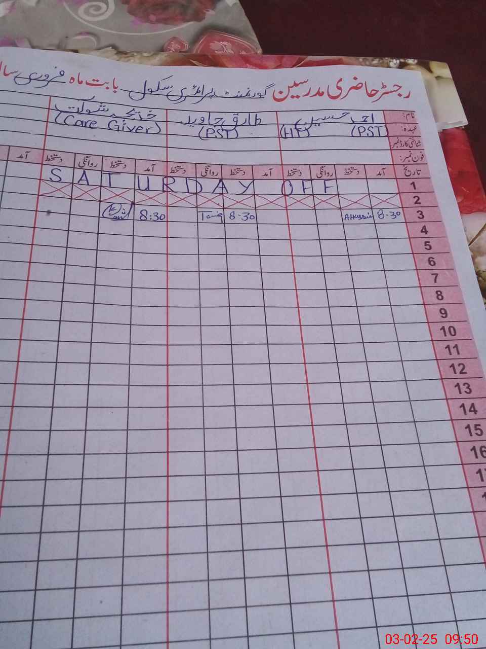 | Name: AH**** HU**** Designation: (School Headmaster's/Headmistress's) PTC/JV Phone/Cell Number: 03**** |