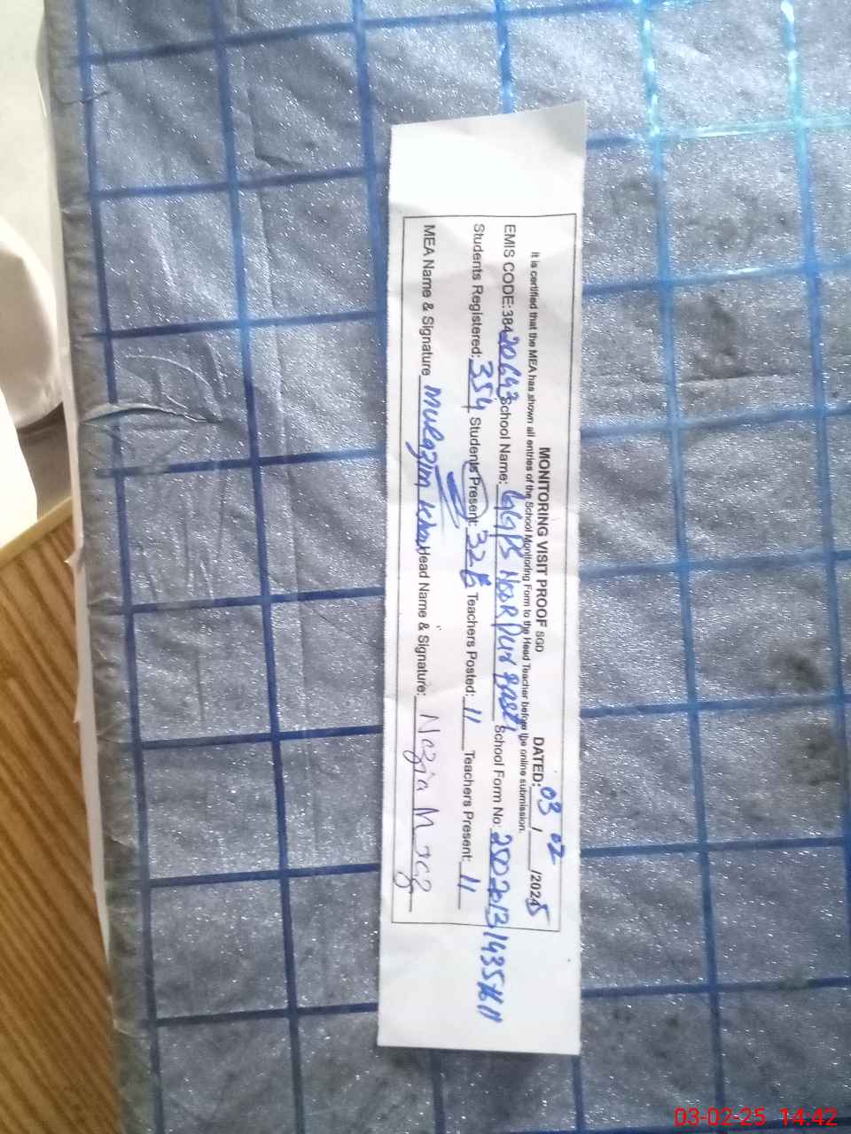 | Certified that this School was Inspected by the Undersigned MEA/DMO Today and the Information Stated Above is as Per Record. | |||||
