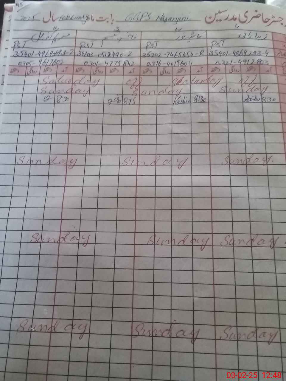 | CNIC | Full Name | Designation | R/C | Absence During Last Calender Month |