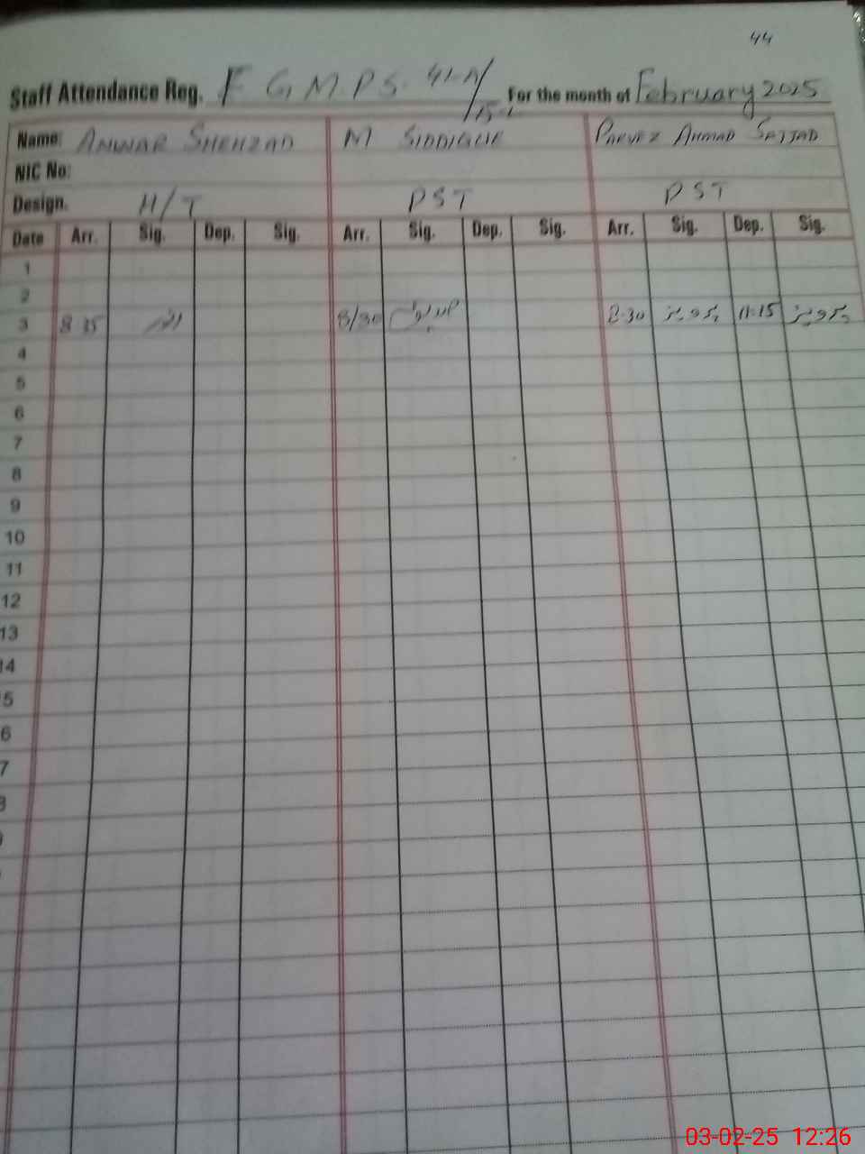| Name: An**** Sh**** Designation: (School Headmaster's/Headmistress's) PST Phone/Cell Number: 03**** |