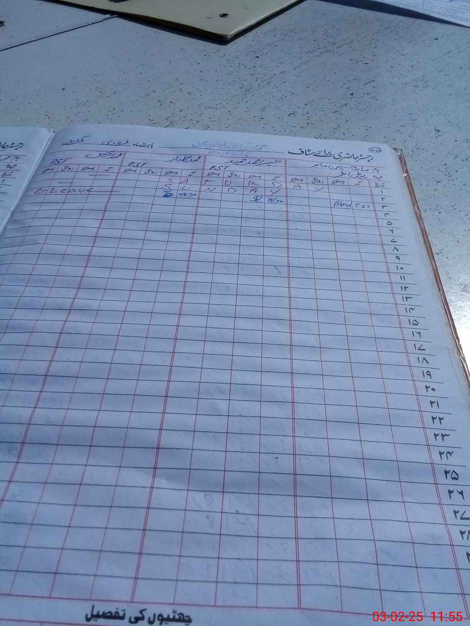 | CNIC | Full Name | Designation | R/C | Absence During Last Calender Month |