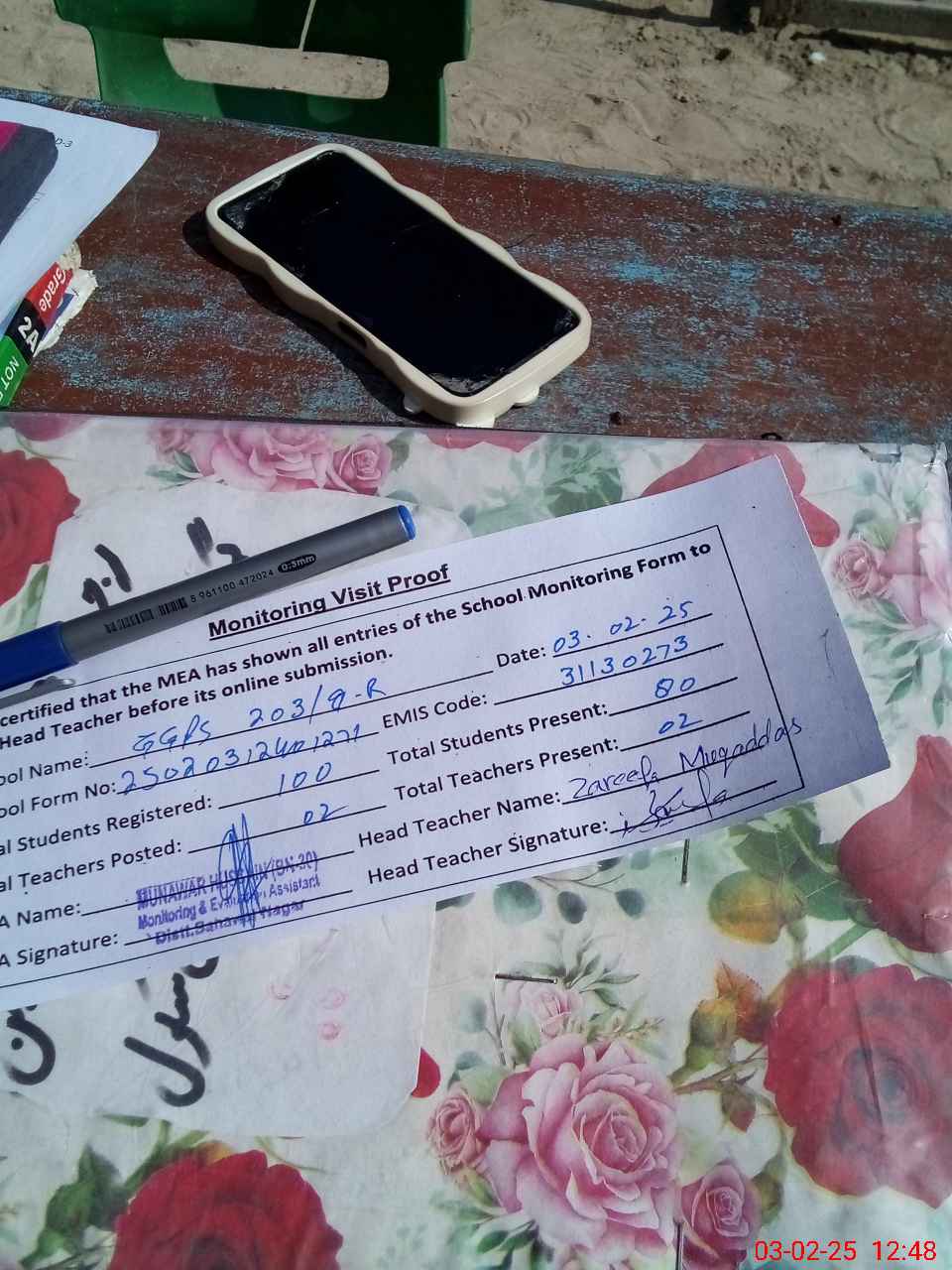 | Attendance Register | Head Teacher | MEA with School | Visit Proof |