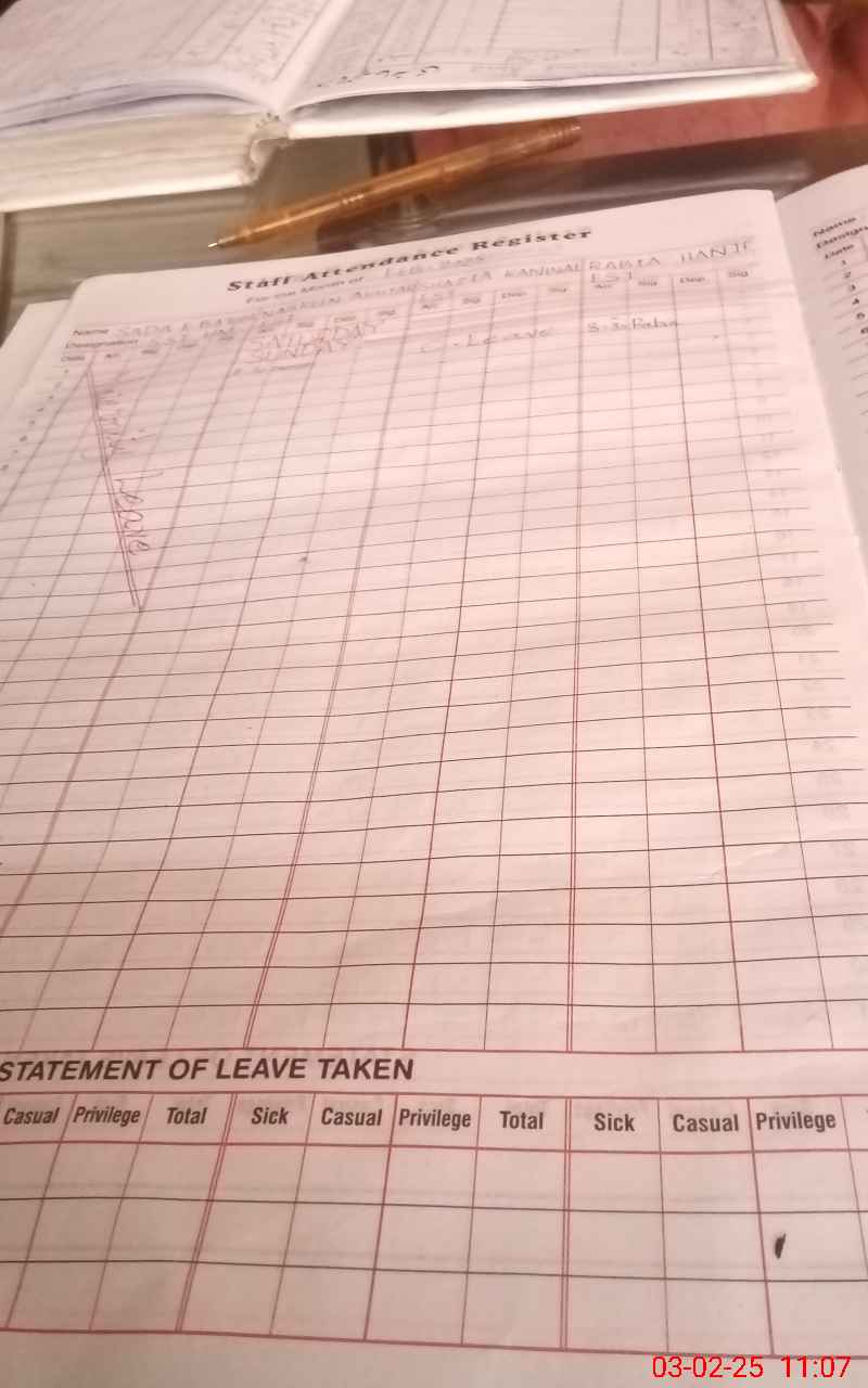 | CNIC | Full Name | Designation | R/C | Absence During Last Calender Month |