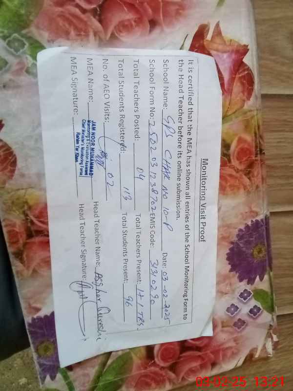 | EMIS Code: 31310290 | Name of School: GPS CHAK NO.10/P | |||