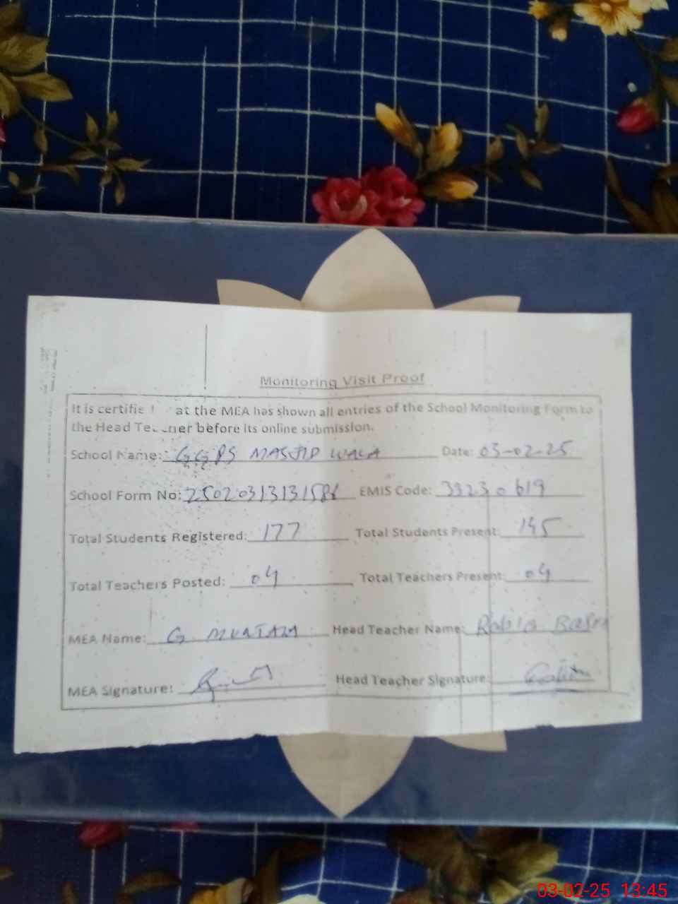 | EMIS Code: 33230619 | Name of School: GGPS MASJID WALA | |||