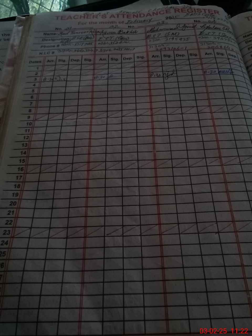 | CNIC | Full Name | Designation | R/C | Absence During Last Calender Month |
