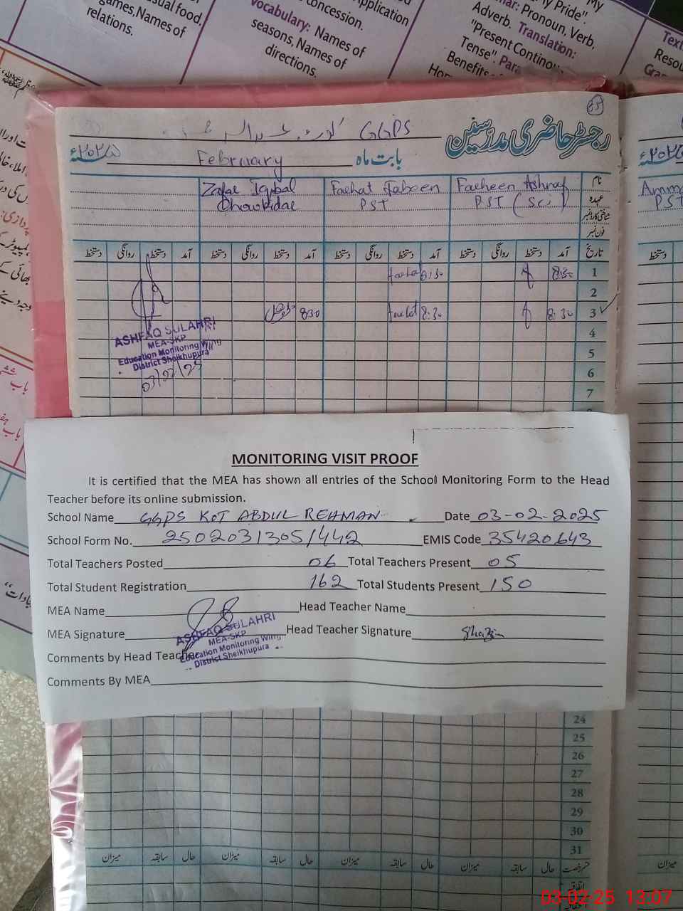 | EMIS Code: 35420643 | Name of School: GGPS KOT ABDUL REHMAN | |||