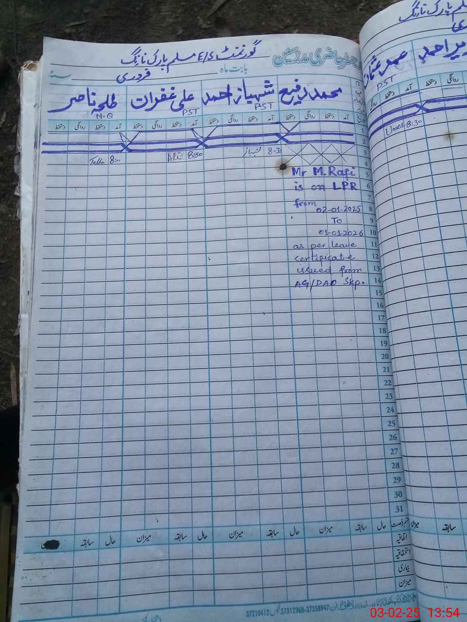 | CNIC | Full Name | Designation | R/C | Absence During Last Calender Month |