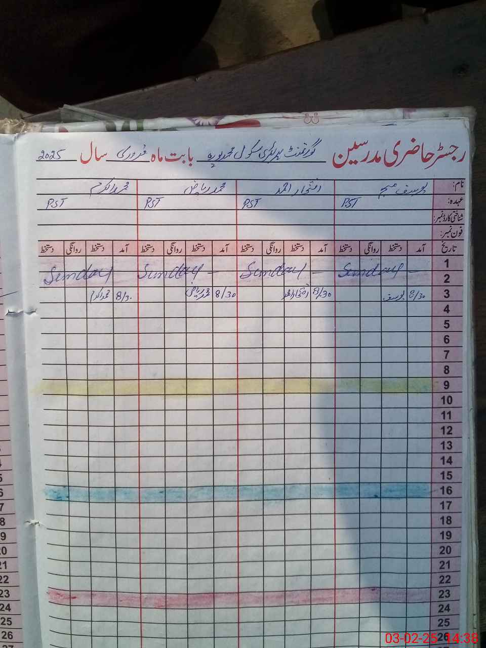 | CNIC | Full Name | Designation | R/C | Absence During Last Calender Month |