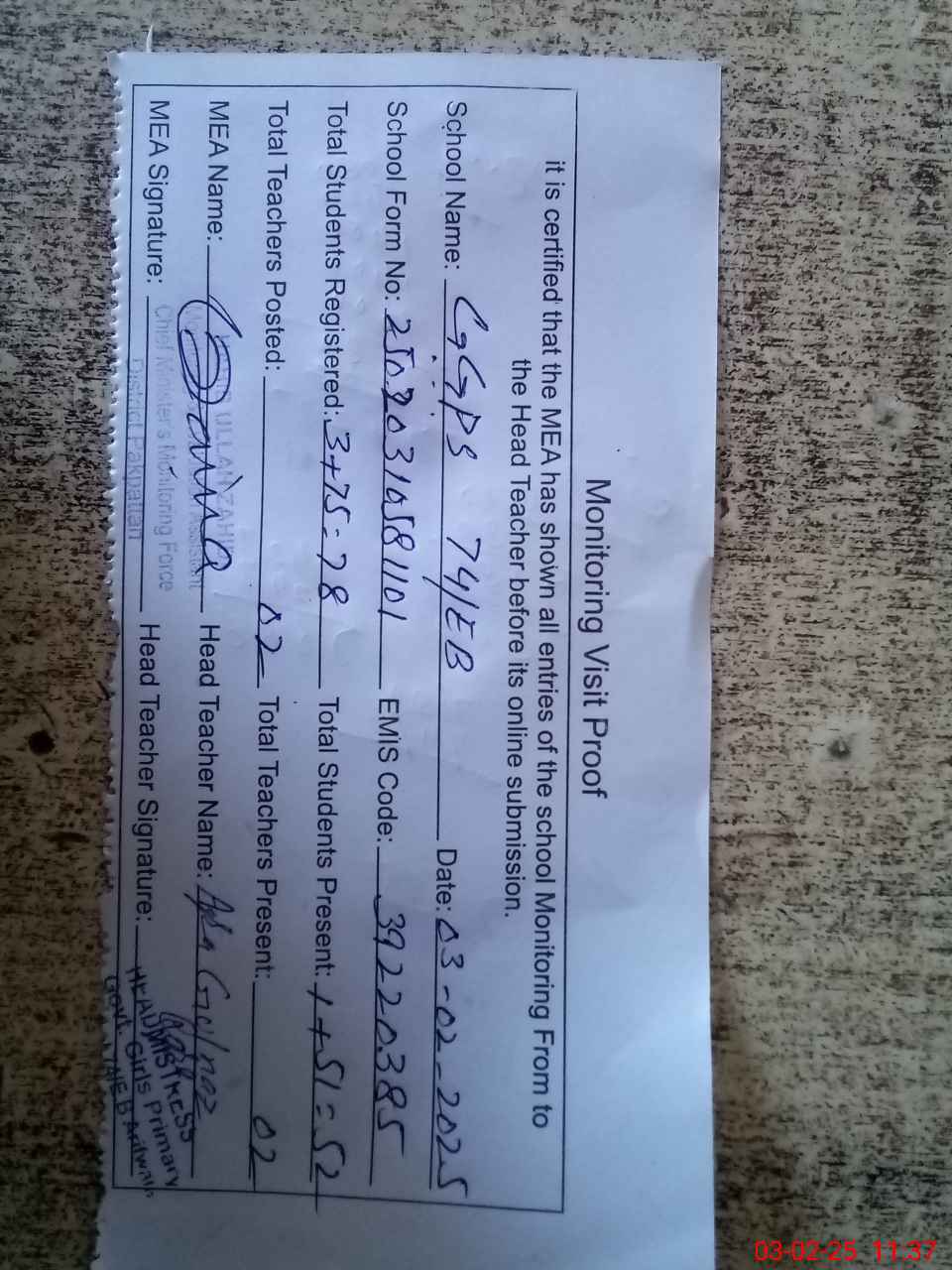 | EMIS Code: 39220385 | Name of School: GGPS 74 EB ARIFWALA | |||