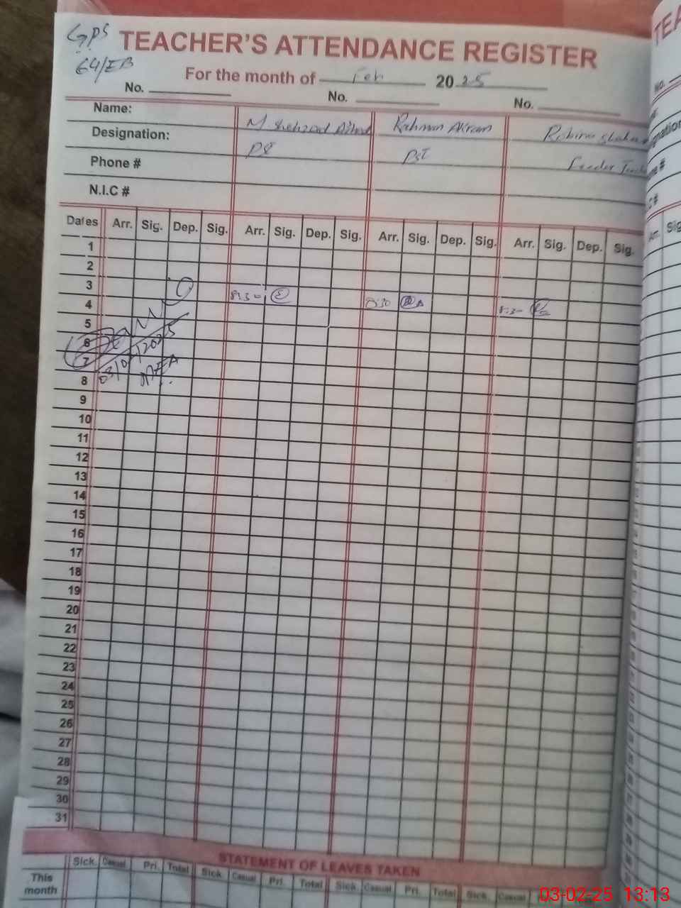 | Name: MU**** SH**** AR**** Designation: (School Headmaster's/Headmistress's) PST Phone/Cell Number: 03**** |
