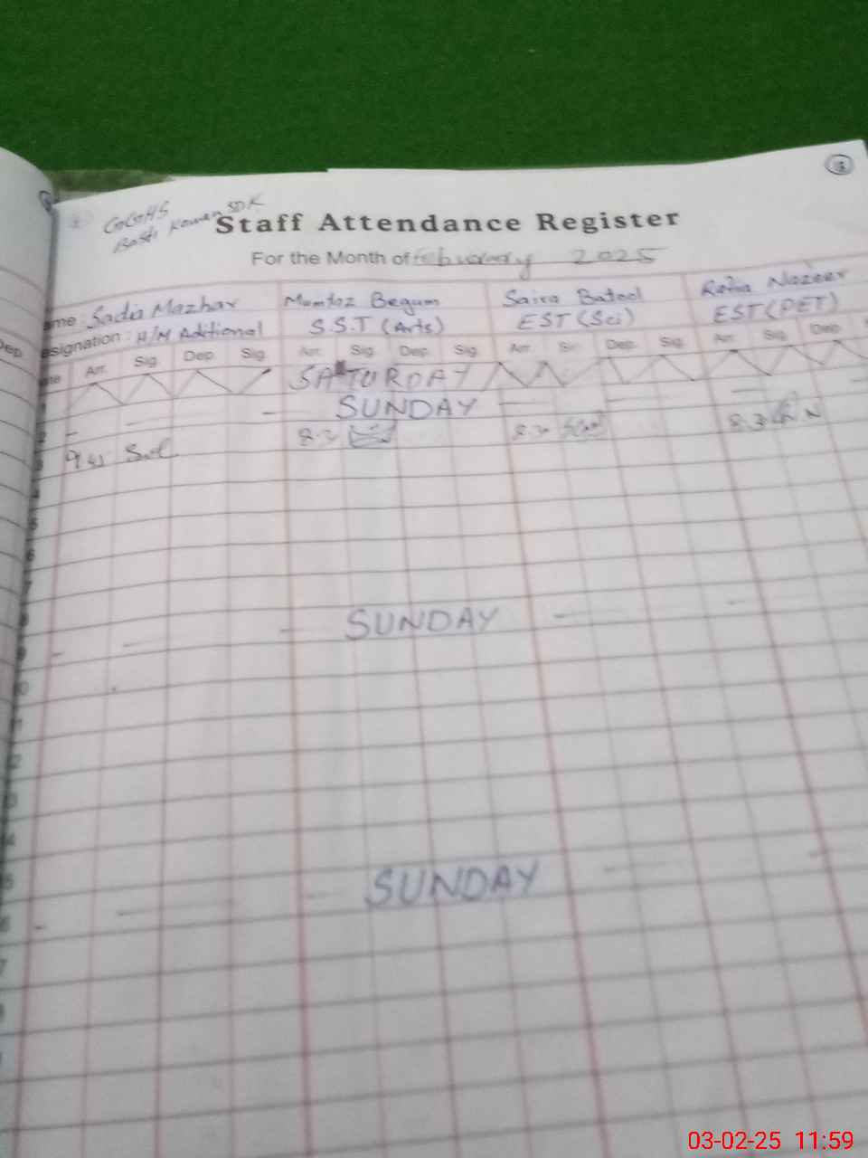 | Monitoring Date: 03-02-2025 | Start Time: 03-02-2025 11:36 AM | End Time: 03-02-2025 12:14 PM | Name of MEA: Mu**** Ak**** Ba**** | |