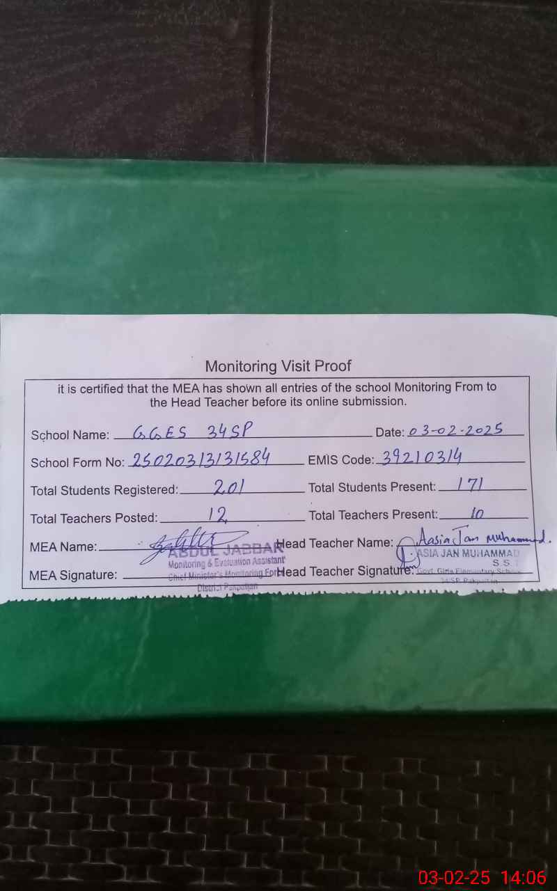 | EMIS Code: 39210314 | Name of School: GGES 34 SP | |||