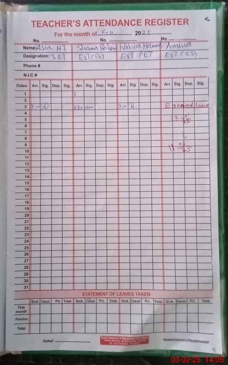 | Name: AA**** JA**** MU**** Designation: (School Headmaster's/Headmistress's) SST (GENERAL) Phone/Cell Number: 03**** |