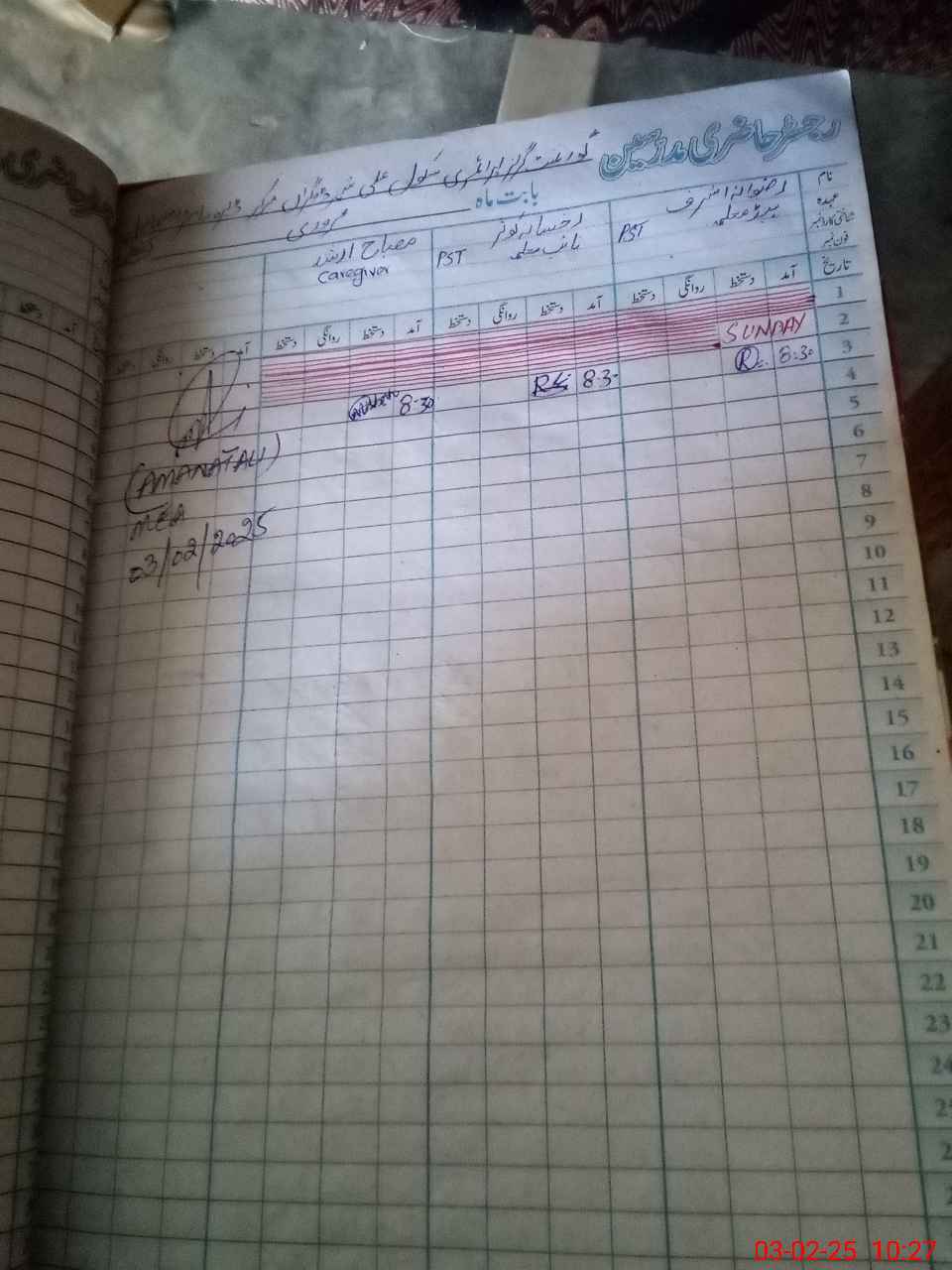 | Name: RI**** AS**** Designation: (School Headmaster's/Headmistress's) PST Phone/Cell Number: 03**** |