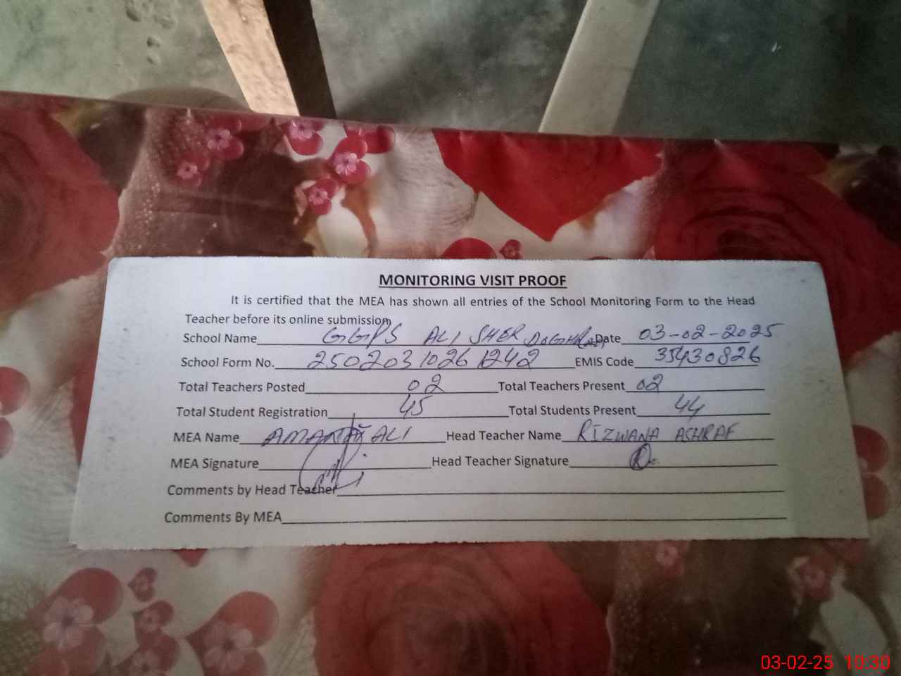 | EMIS Code: 35430826 | Name of School: GGPS ALI SHER DOGRAN | |||
