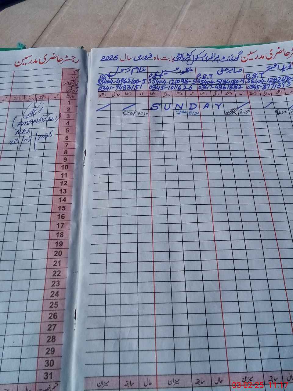 | Name: NA**** AK**** Designation: (School Headmaster's/Headmistress's) PST Phone/Cell Number: 03**** |
