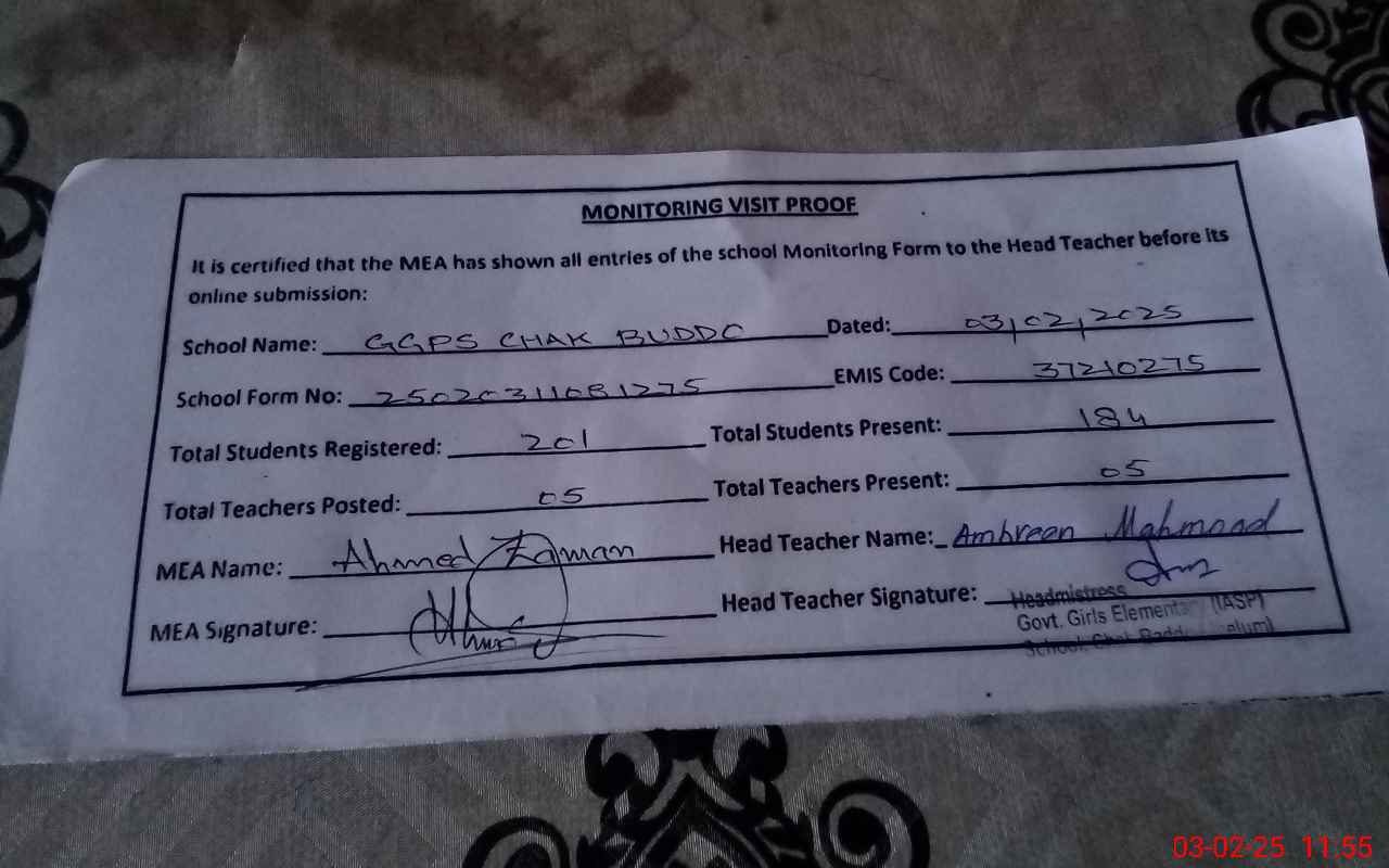 | EMIS Code: 37210275 | Name of School: GGPS CHAK BUDDO | |||