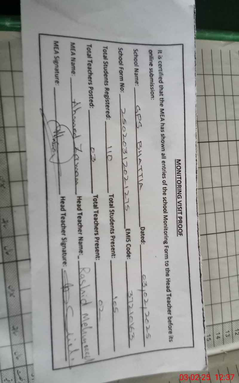 | EMIS Code: 37210163 | Name of School: GPS BHATTIA | |||