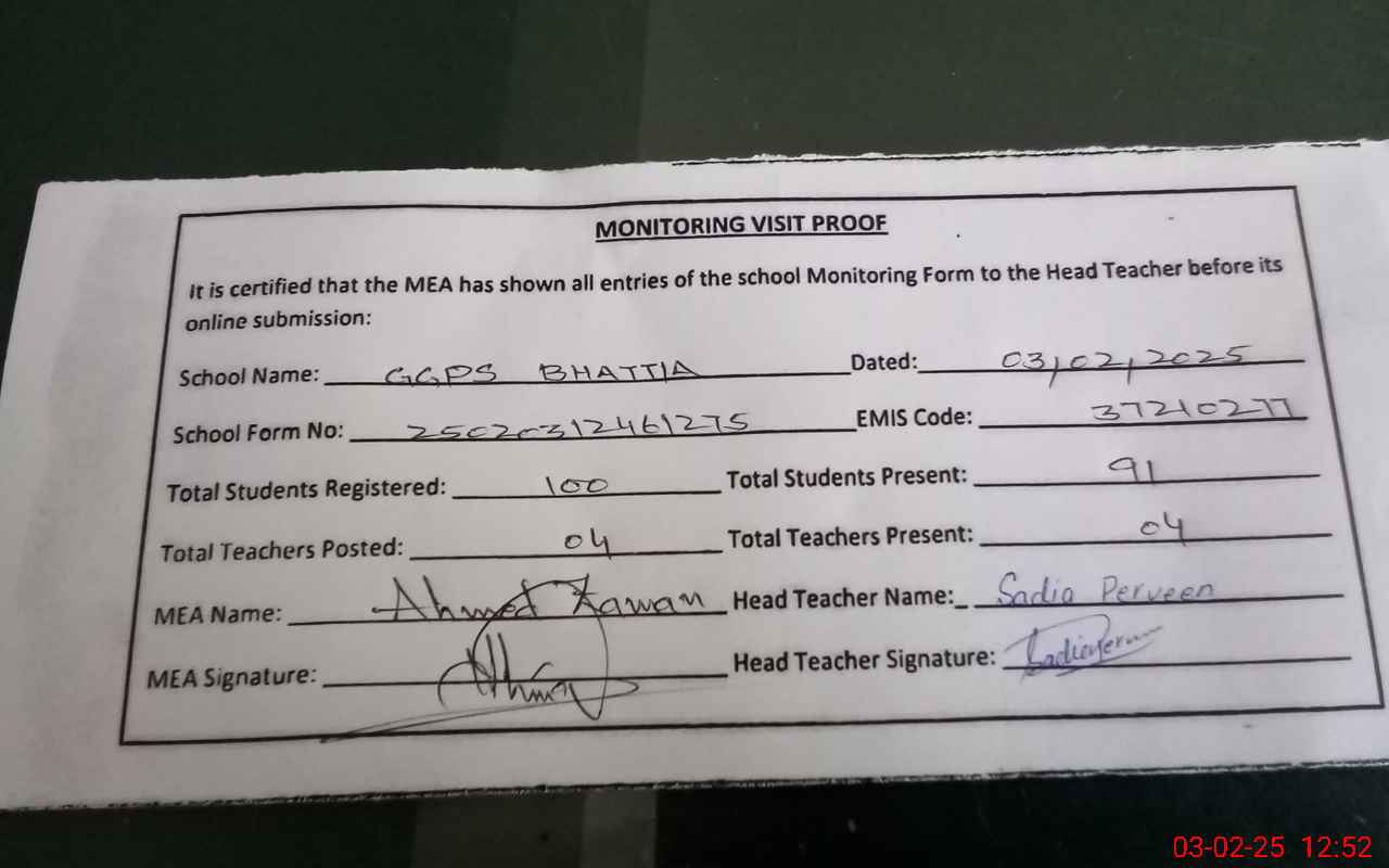 | EMIS Code: 37210277 | Name of School: GGPS BHATTIA | |||