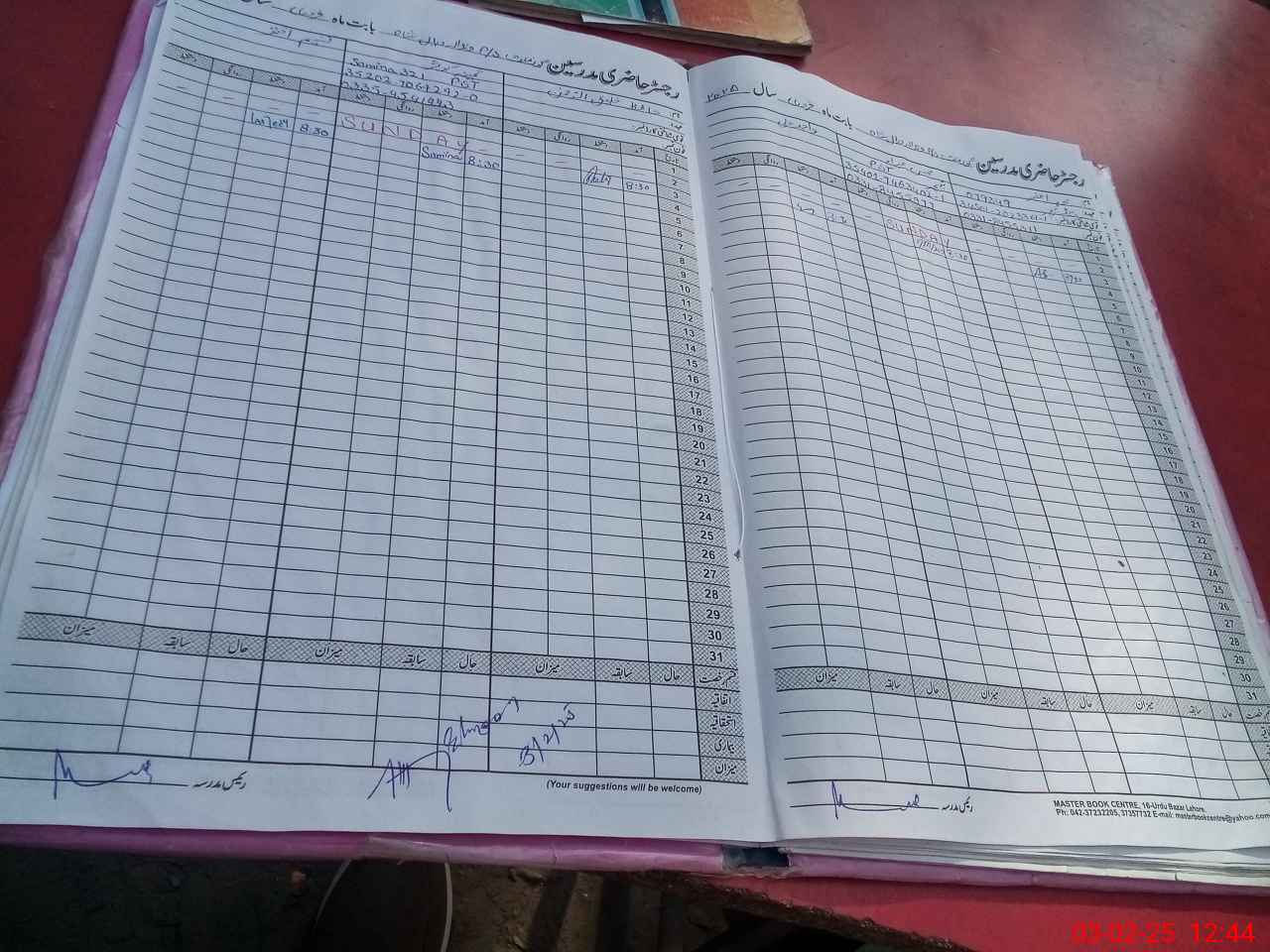 | CNIC | Full Name | Designation | R/C | Absence During Last Calender Month |