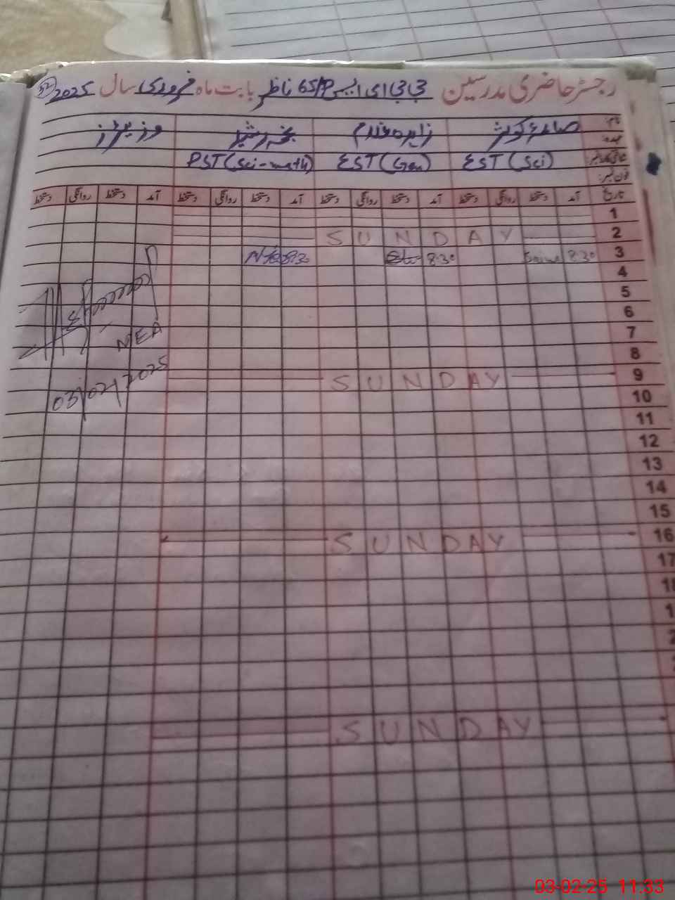 | Name: Sa**** Ka**** Designation: (School Headmaster's/Headmistress's) EST Phone/Cell Number: 03**** |