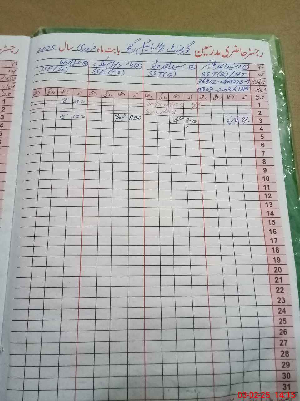 | Name: RA**** AH**** TA**** Designation: (School Headmaster's/Headmistress's) SST I C H M Phone/Cell Number: 03**** |