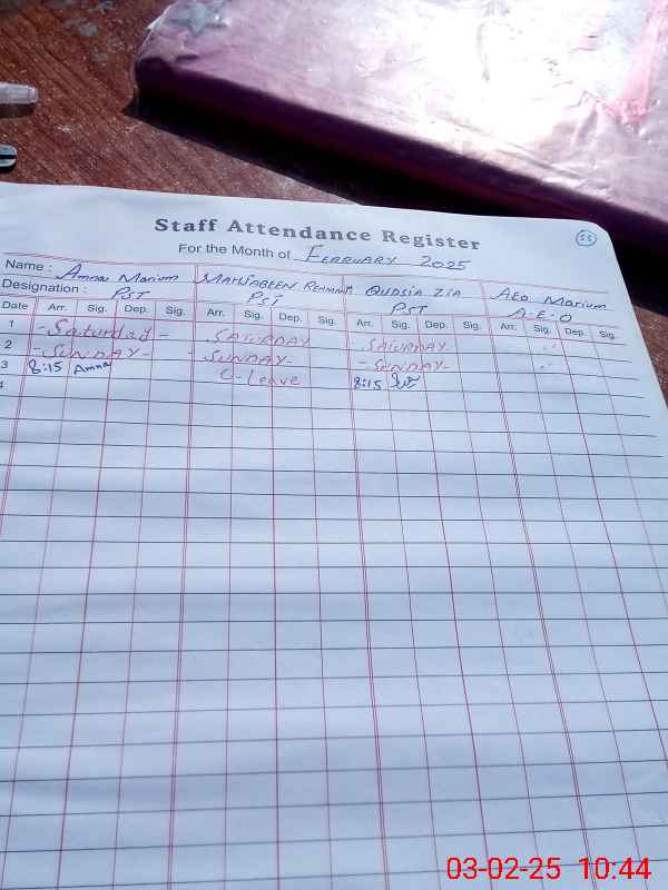 | Name: Am**** Ma**** Designation: (School Headmaster's/Headmistress's) PST Phone/Cell Number: 03**** |