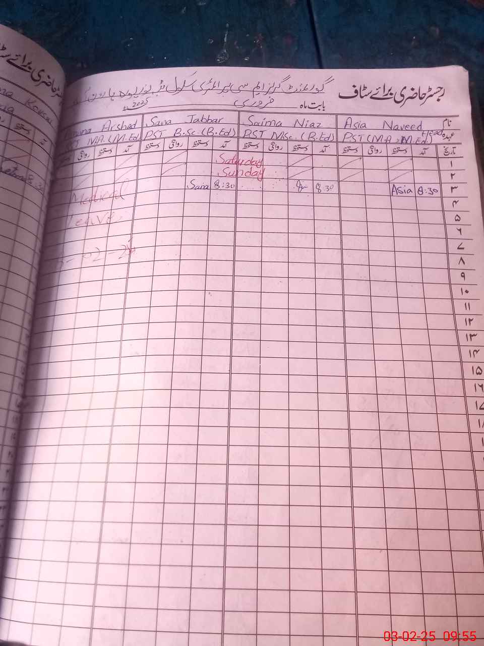 | Leave | Duty | Absent | Maternity | Medical | Ex- Pak |