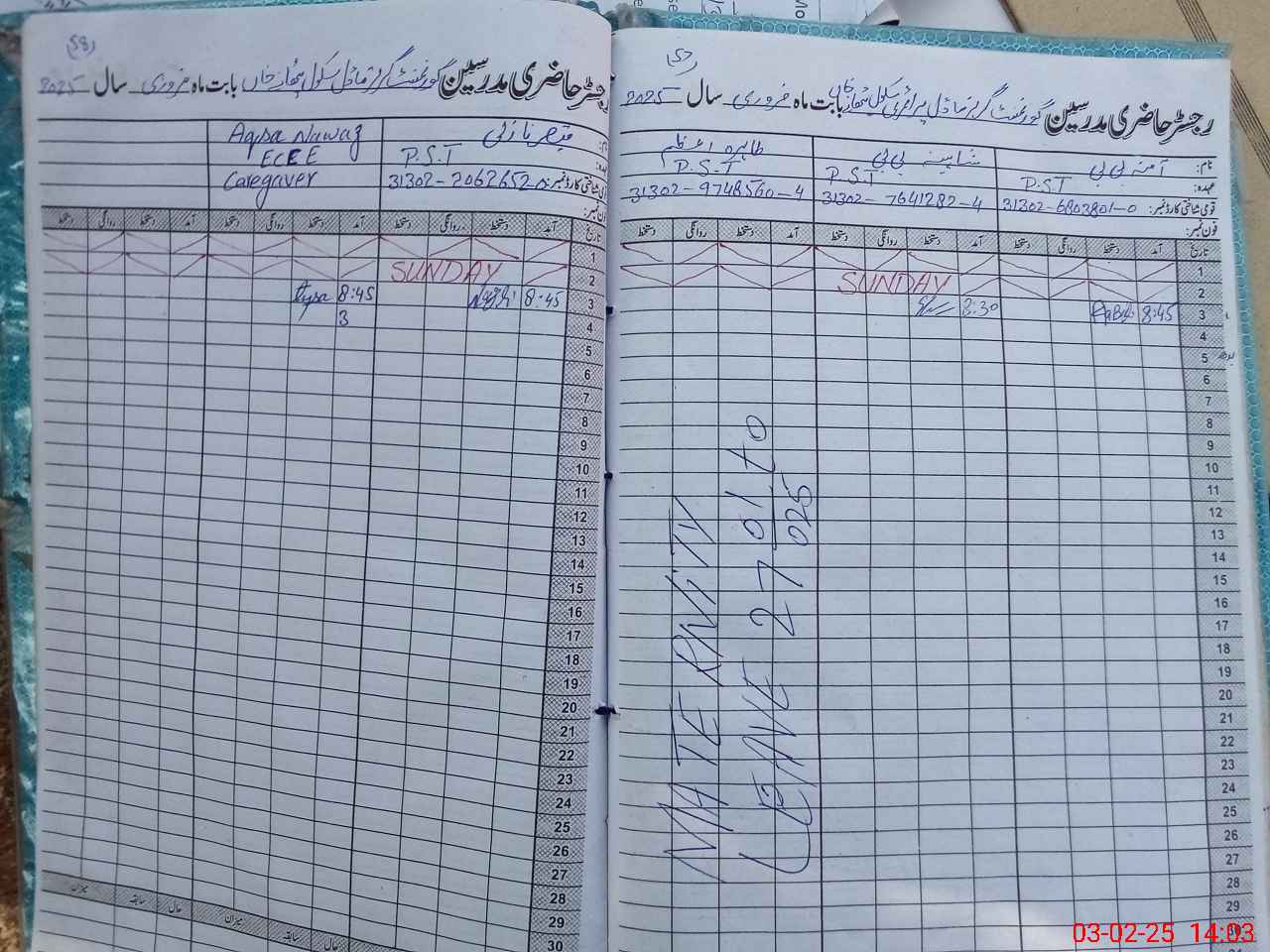 | Name: Am**** Bi**** Designation: (School Headmaster's/Headmistress's) PST/PTC/JV Phone/Cell Number: 03**** |