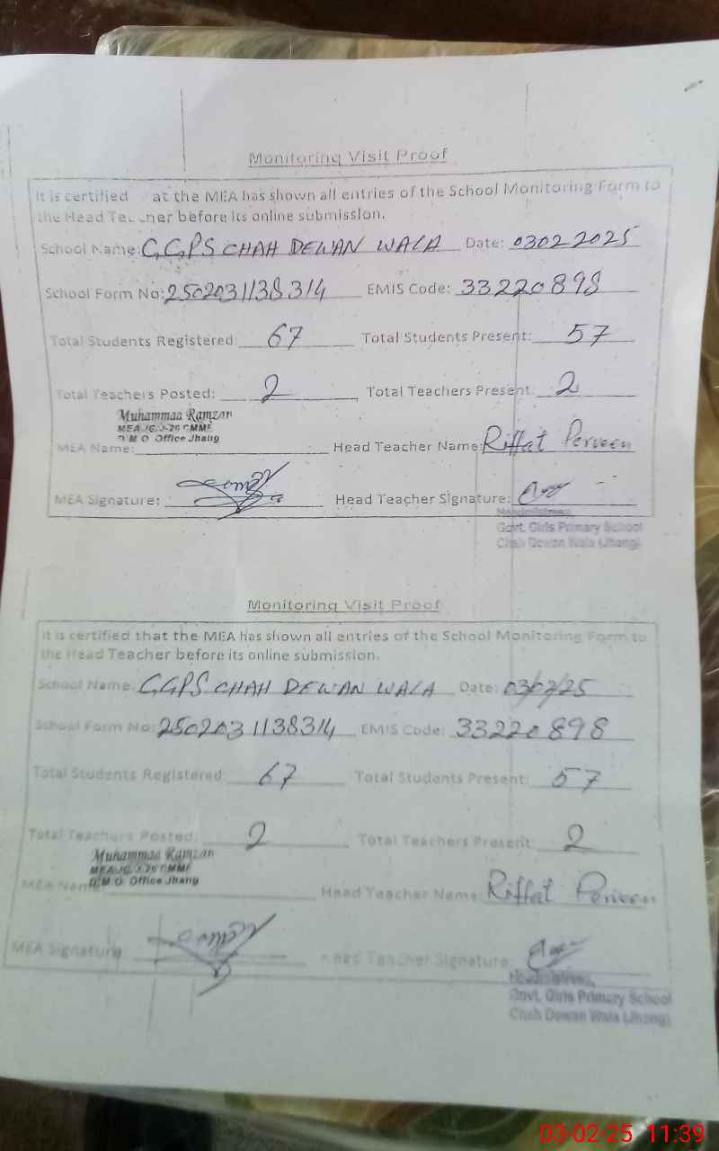 | EMIS Code: 33220898 | Name of School: GGPS CHAH DEWAN WALA | |||