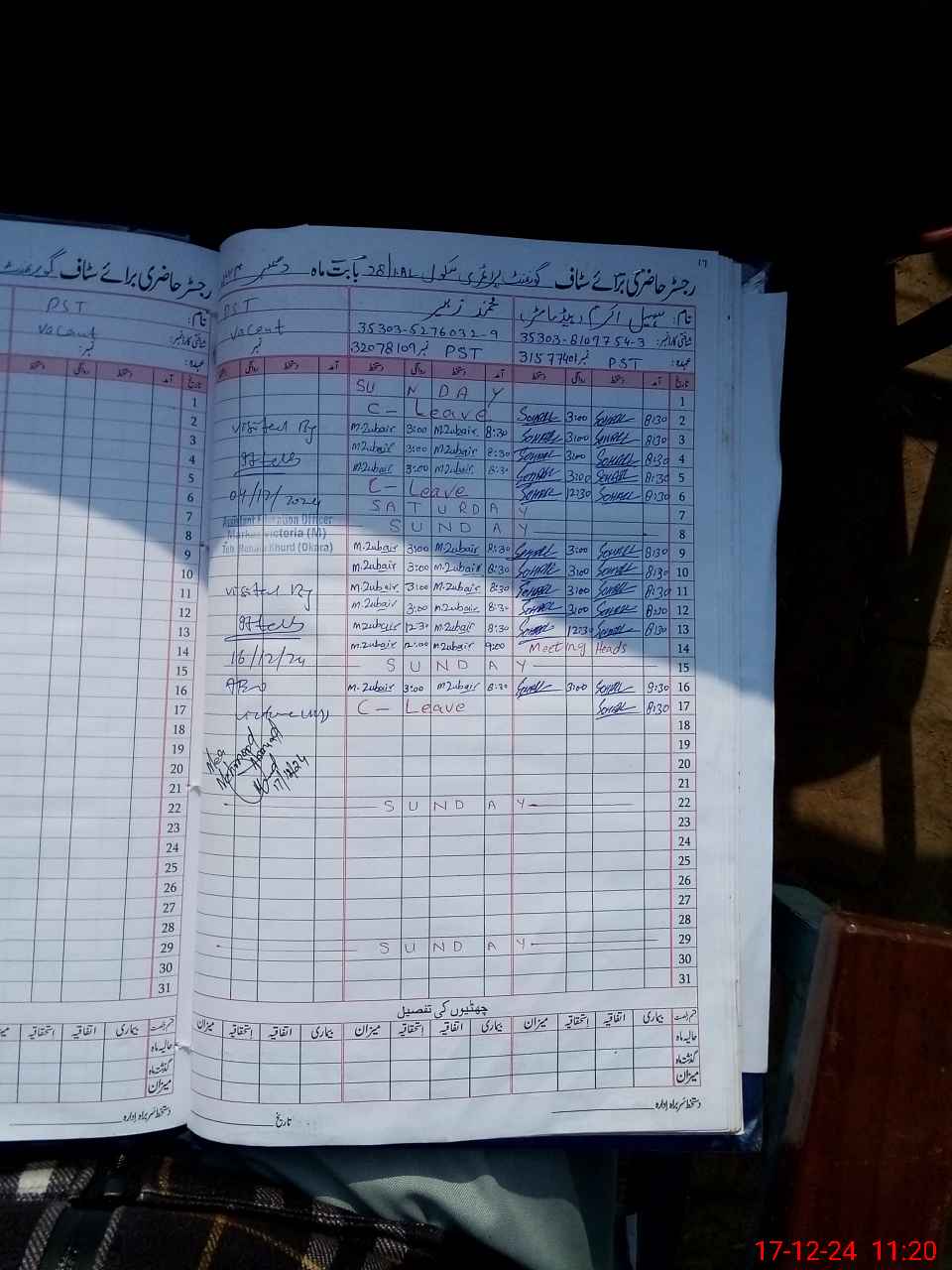 | CNIC | Full Name | Designation | R/C | Absence During Last Calender Month |