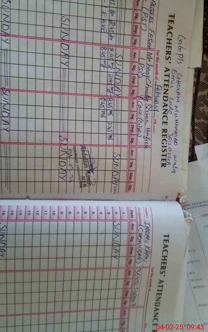 | EMIS Code: 36120246 | Name of School: GGPS GHULAM MUHAMMAD WALA | |||