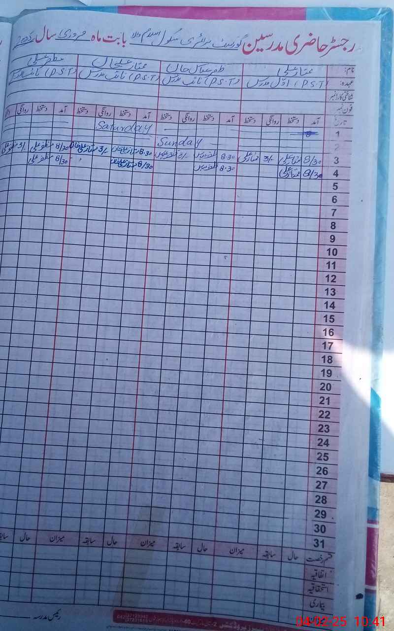 | Name: MU**** AL**** Designation: (School Headmaster's/Headmistress's) PST Phone/Cell Number: 03**** |