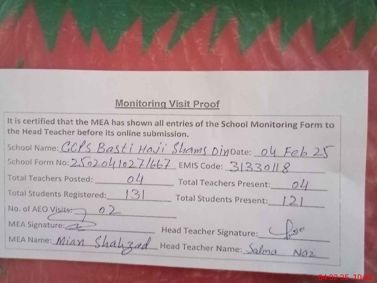 | EMIS Code: 31330118 | Name of School: GGPS BASTI HAJI SHAMS DIN | |||